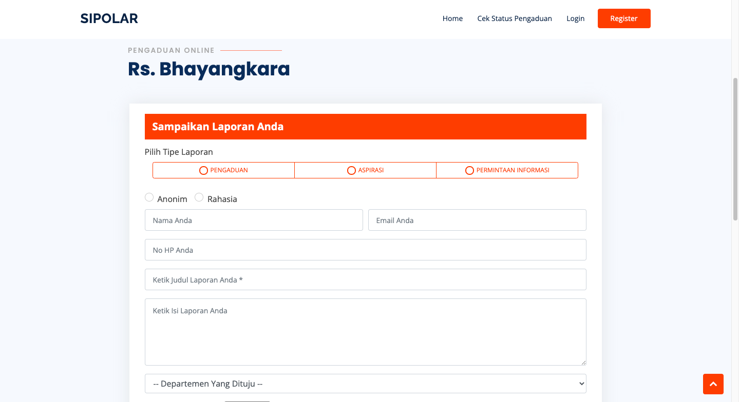 kepada Masyarakat Umum / Tenaga Medis / Pegawai...Pengaduan Online rumah Sakit Bhayangkara