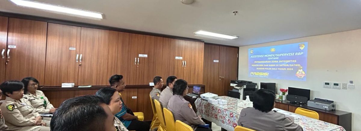 Tim RBP Birorena Polda Bali yang dipimpin oleh Kabag RBP AKBP Komang Ayu Astini S.E,M.M dihadiri Wakarumkit juga masing-masing operator di 6 area perubahan ZI (zona integritas) ketua Pokja/pengungkit bertujuan untuk memberikan bimbingan teknis dan evaluasi terhadap implementasi Kelengkapan Lembar Kerja Evaluasi (LKE).